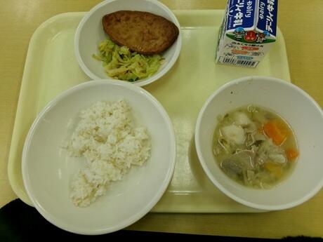 今日の献立は、飫肥の天ぷら・即席漬け・豚汁・ご飯・牛乳のメニューでした。