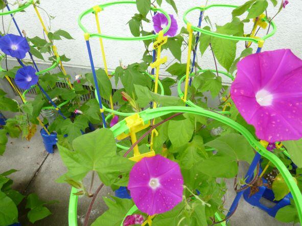 一年生の「咲いた咲いた」、「きれいな花が咲いた」、「つぼみもまだまだある」と言うような声が今朝は響いていました。そうです、毎日世話をしている朝顔の花がかなり開きだしたのです。色は、紫とピンクが多いようです。しばらくは、朝から元気のよい声が響きそうです。