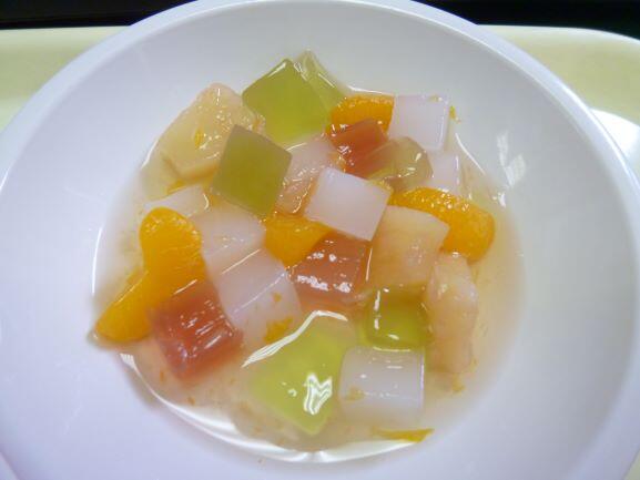 フルーツポンチ、黒糖パン、焼きそば