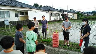 18日朝、雷注意報が発令され、大雨の予想だったので、子どもたちの安全を第一に考え5年生による田植えを中止しました。夕方、JA青年部の方々が急遽、田植え機を準備してくださり、数名の職員と近くに住む子どもたちで行うことができました。お忙しい中、本当にありがとうございました。