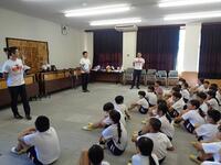 12月3日(水)の3校時に、火災の発生を想定した避難訓練を実施しました。日南消防署の方々にもご協力いただき、児童の避難の様子も見ていただきました。児童は真剣に訓練に参加することができ、素早く運動場に避難することができました。避難後の運動場で、消防署の方から火災の怖さ・火災の原因や防ぎ方についての話をしていただき、児童はしっかりと聞きながら防災への意識を高めることができました。また、1年生は特別に消防車(ポンプ車)の見学もさせていただき、大喜びでした。日南消防署の職員の皆様ご協力ありがとうございました。