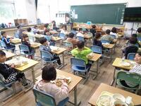 3月24日(火)は、本年度最後の給食でした。メニューは、「すき焼き煮・千切り大根のオーロラサラダ・麦ごはん・お祝いケーキ」でした。すき焼き煮はお肉もたっぷりで食べ応えもあり、オーロラサラダも食べやすい味付けになっていて1年生ももりもり食べていました。6年生にとっては小学校生活最後の給食でしたので、一口ずつしっかり味わってくれたことだと思います。給食では栄養面だけでなく味付けも工夫していただき、苦手な食材も少しずつ食べることができるようになった児童も数多くいます。いつもおいしい給食を提供してくださった給食センターをはじめ関係者の皆様ありがとうございました。