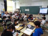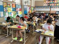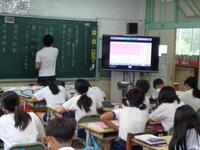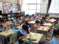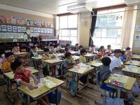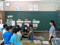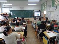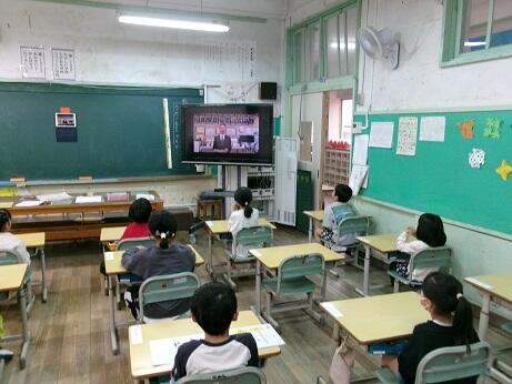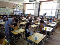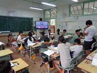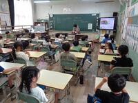 7月16日(水)に、1年生が外国語の学習を行っていました。外国語専科の先生とALTの先生が楽しく授業をされており、児童もとても楽しそうに活動していました。低学年の段階からネイティブな発音に触れたり、英語の楽しさを味わったりすることは、児童の国際感覚を育成するうえでもとても大切なことです。何より、1年生の元気な声と楽しそうな笑顔が印象的でした。