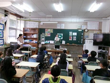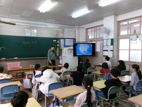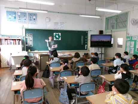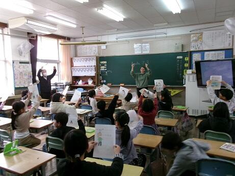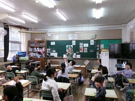 3月5日(水)には、ALTの先生と一緒に2年生が外国語教育を体験していました。12月以来の活動です。