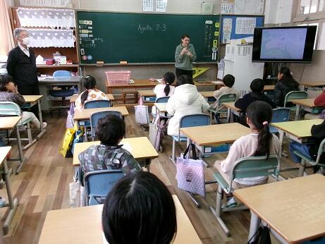11月10日(月)に、6年生が平和学習を行いました。平和を語り継ぐ会の皆様3名に講師として来校していただき、自分たちの住む日南市でも戦争による悲しい出来事が起こっていたことを教えていただきました。人間魚雷「回天」に関する施設があったことや日南市でも空襲の被害があり梅ヶ浜での空襲で大切な家族を失った方の体験をもとにした紙芝居など、児童の心に響く話をしていただきました。児童が今の平和な日々のありがたさや絶対に戦争は起こしてはいけないことなど改めて考える良い機会となりました。今回の学習をもとに、来週の修学旅行で訪れる知覧特攻平和会館での平和学習をさらに充実したものできると感じています。平和を語り継ぐ会の皆様ありがとうございました。
