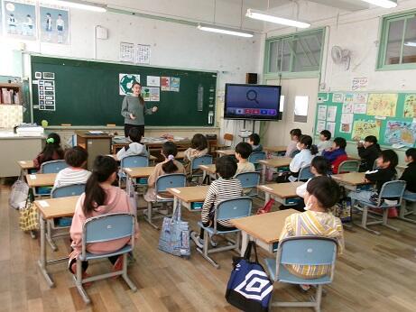 3月12日(水)には、1年生がALTの先生と一緒に2回目の外国語教育で英語を学ぶ機会がありました。