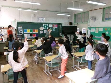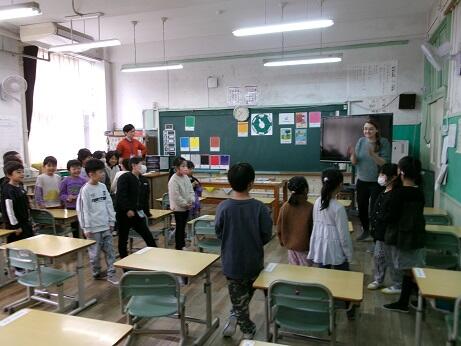 楽しく英語に慣れる体験となりました。最後に、ALTの先生がアメリカ合衆国へ帰国されるということでした。