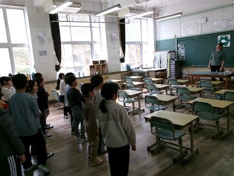 10月3日(金)に、日南市内の小中学校一斉の避難訓練を実施しました。14:00から市内全ての小中学校での実施でしたので、吾田小でも大規模な地震が発生したことを想定して訓練を行いました。児童は、事前の命を守る行動に関する指導の後に、地震発生から身を守る行動を実践していました。本校の校舎は耐震化ができており、慌てて外に避難する場合のリスクを避けるために教室内で身を守る行動をとらせました。落下物等からしっかりと頭部を守るために机などの下に身を隠し、揺れが収まるのを待ちました。その後、動画等を視聴して具体的に命を守る行動について理解を深めることができました。いざというときに自分の命を守る行動につなげてほしいものです。