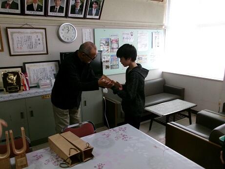 3月6日(木)には、日南市旅する読書100冊を達成した1年生の表彰を校長室で昼休みに行いました。