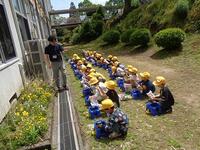 9月19日(金)に、1年生が生活科の学習で本年度2回目の望洋台の散策に出かけました。春とは違った望洋台の様子や昆虫などを観察し楽しく活動することができたようです。特にバッタ類が数多く生息しており、小さくてかわいいバッタや大きなバッタ、緑色のバッタや茶色のバッタ等じつに様々なバッタを見つけて児童は大喜びでした。残暑が厳しい中で汗をかきながらも楽しく活動する1年生の姿に元気をもらうことができました!なお、春の活動の際と同様に今回も望洋台への山道の整備を環境整備員の皆様が行ってくださいました。いつもありがとうございます。
