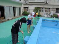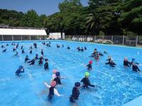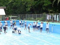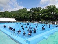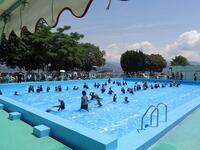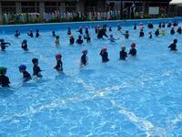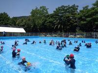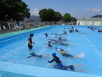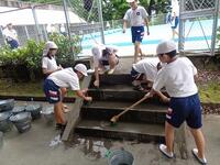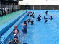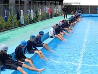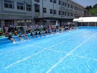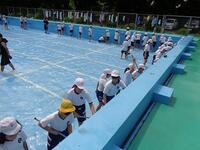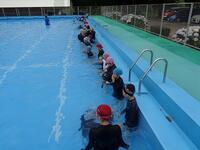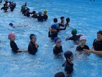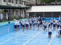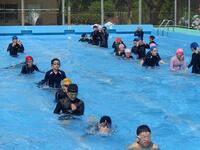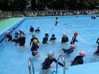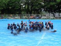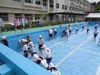 7月18日(金)に、6年生が命を守るための具体的な取組の一環として着衣泳を実施しました。児童は水着のうえに普段着(長袖、長ズボン等)を着用し、プールに入りました。児童は、水泳の学習で着用する水着と違って普段着は濡れると体に張り付いて自由に動けなくなることや重くなってしまうことを体験していました。慌てずに手足を広げて体を浮かすことや呼吸の仕方、救助の仕方など具体的な内容を実践し、いざというときに役立つ活動となっていました。