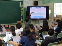 昔の新聞記事や昔と今の道路の画像などの資料が提示され、子どもは資料から読み取れる情報を発表していました。