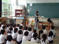 9月18日(木)に、3年生が学校近くのコープみやざき日南店で社会科見学をさせていただきました。当日は、3つの学級が2つのグループに分かれて、大画面モニターを使って説明していただいたり、店長さんに売り場ごとの工夫などのいろいろな説明をしていただいたりと、とても丁寧な対応をしていただきました。普段は買う側としてお店を訪れている児童も、この日は売る側としての視点から店内を見る事ができ、スーパーマーケット等の小売業の工夫等を学習する目的に沿って、いろいろなことを学ぶことができた有意義な見学となりました。ご協力いただいたコープみやざき日南店の皆様ありがとうございました。