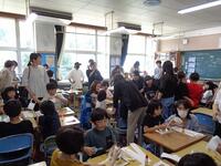 11月5日(水)~7日(金)に3年生が魚うどん作りに挑戦しました。3年生は3学級あるので、三日間にわたって各学級ごとの実施となり、ご協力いただいた日南市漁協婦人部の皆様やボランティアの皆様には大変お世話になりました。三日間を通して、各種メディア等の取材も多かったのですが、児童は緊張することもなく、魚(ニベ)のすり身をすり鉢で熱心にすりつぶし、塩や片栗粉を混ぜて専用の絞り器で魚うどんを作っていました。初めての体験に戸惑うこともありましたが、優しく教えていただきながら見た目も素晴らしい魚うどんが完成していました。試食した児童たちは、「歯ごたえがあってとってもおいしい」「今まで食べたうどんの中で一番おいしい」などと感想を述べていました。自分たちで作った郷土料理は格別だったのでしょう!ご協力いただいた皆様ありがとうございました。