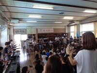 9月25日(木)に、運動会に向けて初めての全体練習を行いました。天候の関係で体育館でこまめな水分補給を行いながらの実施となりました。蒸し暑い中でも全校児童が整然と整列し、体育主任の説明を聞きながら開会式と閉会式の練習を行うことができました。低学年児童もしっかりと話をする人の方に体を向けて真剣に話を聞く姿は100点満点でした。これから練習が本格化してきますが、一つ一つのことをしっかりと積み上げて素晴らしい運動会になることが期待できます。