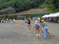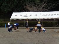 10月25日(土)に運動会の前日準備を行いました。前日までの雨で運動場のコンディションが悪く、翌日の運動会の実施が不安視される状況でした。25日の前日準備では、とにかく運動場の整備を中心に行うことになり、午前中から5・6年生が熱心に運動場の整備に取り組んでくれました。水たまりの泥水をスポンジを使って吸い取る作業は大変でしたが、5・6年生が靴を泥だらけにしながらも一生懸命取り組んでくれました。学校のリーダーとしてこうした地道なことにも熱心に取り組む姿を見て、改めて高学年児童がとても頼もしく思えました。午後からは、保護者の皆様にもご協力いただき砂入れ等も行い何とか運動場の整備ができました。ありがとうございました。!!