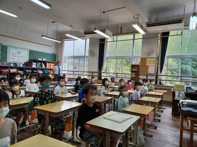 7月に入りました。今日の朝の活動の時間は、全校集会でした。始めに校長の話で、3つの約束(①いのちを大切にします。②悪いことはしません。③善いことをします。)と関連づけて、「ちっちゃなサリーはみていたよ ひとりでゆうきをだせたなら」の読み聞かせをしました。最近、学校で起こったことを振り返らせながら、全校で善い行いを広げていくように訓話しました。次に、7月の月目標「わすれものゼロをめざそう」についての話、学校生活の様子の話を担当教諭が行いました。最後に、新しい先生の紹介をしました。3・4年生の算数科において少人数指導を行い、個に応じた指導の充実を図っていきます。よろしくお願いします。