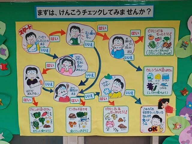 7月に入り、保健室の掲示板がリニューアルしました。涼しげな海中をイメージするような掲示板になりました。かわいいマンボーやたこなどの海の生き物と一緒に、「冷たいものの食べ過ぎに注意!」「あせはすぐにふき取って、いつも清潔な下着をつけていますか?」「外に行くときはぼうしをかぶっていますか?」等のカードが見え隠れしています。子ども達は、のれんのようなスズランテープをめくっては、楽しそうに読んでいました。隣には、クワガタやカブトムシもいます。いつも素敵な掲示板をありがとうございます。