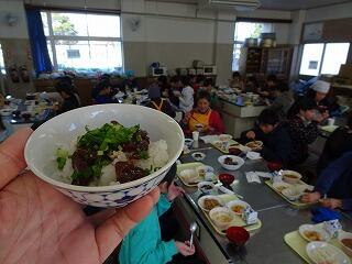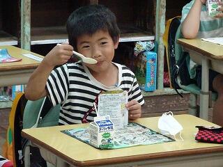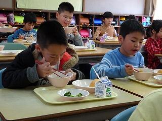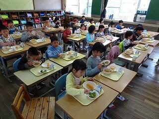 配膳の過程での感染防止のため、品数の少ない献立となりましたが、みんな笑顔で美味しく食べていました。