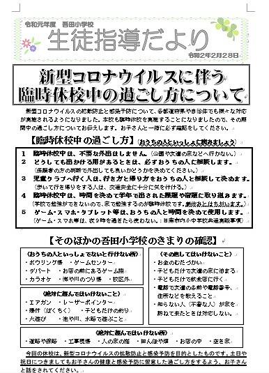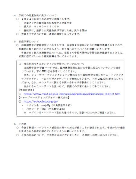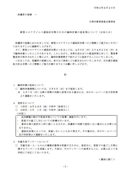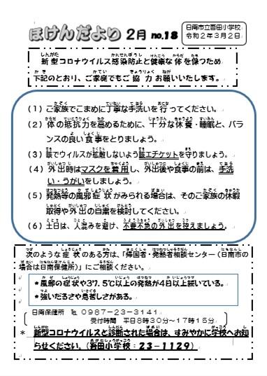 18日からのことについて、日南市教育委員会と学校からのお知らせを掲載しますので、ご覧ください。