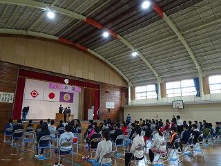 運動会のスローガン発表があり、6年2組の「令和最初の運動会!主役は君だ 仲間と心を一つに めざせW優勝」に決まりました。