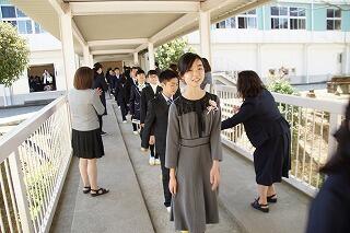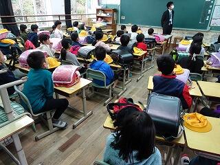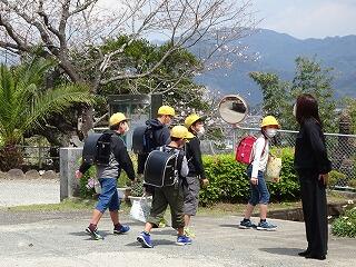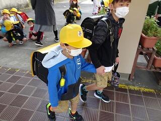 10時30分には下校の時間となり、高学年の子どもたちが迎えに来て、1年生の手を取り、一緒に帰宅しました。