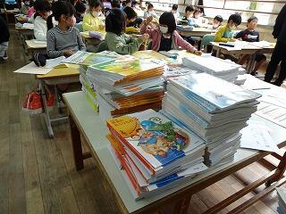 宿題等を回収し、新たにたくさんの宿題やプリントを配布。