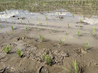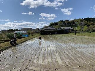 4月13日(月)は、晴天で風の強い中、田植えを行いました。