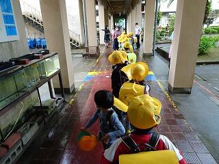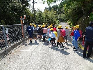 1・2年生は渡り廊下を使って、安全な道路の歩き方や横断歩道の渡り方も学びました。