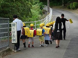 一列に並んで、左右確認しながら横断歩道を渡り、左側通行で下校。