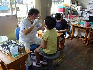 密にならないように間隔を取って並び、二人の先生には丁寧に診察いただき、午前中には全校児童の診察が終えました。