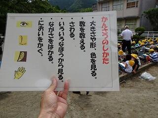そのあとは、みんなで芋の苗を見たり、触ったり、匂いを嗅いだりして、観察。