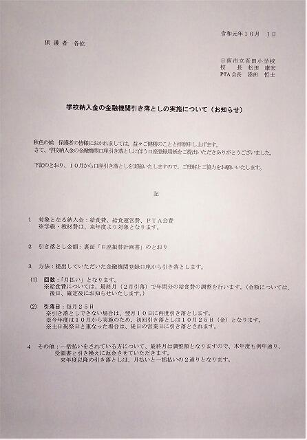 学校納入金の金融機関引き落としの実施について(お知らせ)