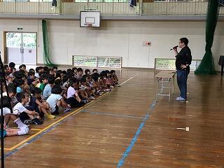 講話後に、6年生児童が日南警察署職員に謝辞を述べました。