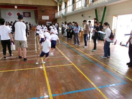 3校時には、奇数学年の授業参観でした。低学年は、スポーツテストの補助を保護者にしていただきました。