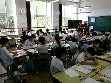 6月4日(火)には、大窪小との交流学習を実施しました。5・6年の学級に加わって、授業を受けました。