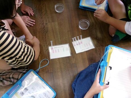 今日行ったのは、保健所の方が指導してくださる透明度調査とパックテストによる水質調査でした。