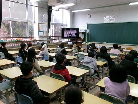 最後に、保健主事から1月の月目標「給食を残さず食べよう」の話や体育主任から「一輪車や大谷選手のグローブの貸し出し」についての話がありました。