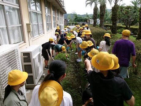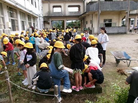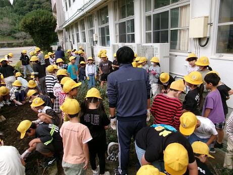 10月31日(木)の朝の活動では、みどりタイムとして2・4・6年生が学級園の手入れをしていました。