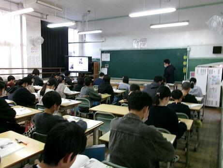 はじめに、学年合同で日本農業遺産である「日南かつお一本釣り」の動画をもとに、講話をしていただきました。
