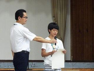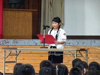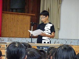 校長先生のお話の後、一学期を振り返り3年生と5年生から作文発表がありました。