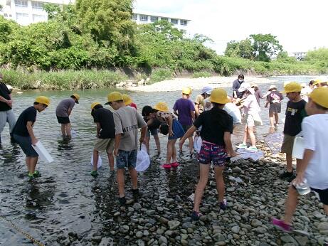 5月23日(火)に、4年生が水辺環境調査を行いました。快晴の中、日南保健所のご協力を受けて活動しました。