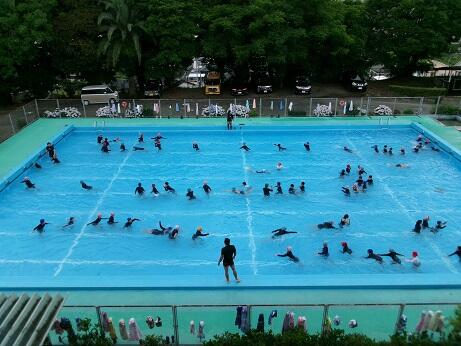 水に慣れる運動から始まりました。水中を歩いたり、水中に潜ったりする運動も行いました。