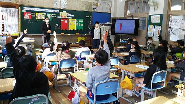 2年生は算数で、長さの勉強でした。計算の仕方を考えて、単位に気を付けながらたくさん練習をしていました。3年生は、学級活動で「わたしらしく、あなたらしく」というテーマで友だちの良いところを見つけ合う学習でした。子ども達は、タブレットを効果的に活用して、「みんなちがってみんないい」ということを実感していました。