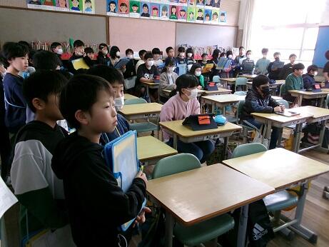 その後で、転入児童2名の自己紹介がありました。2月1日現在、吾田小学校の全児童数は439名です。