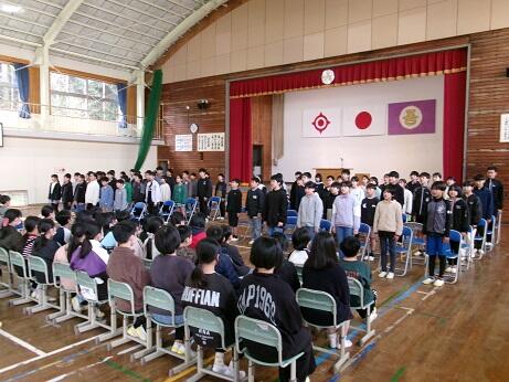 次に、生徒指導主事より3月の月目標「ロッカー・机をきれいにしよう」の話が行われました。