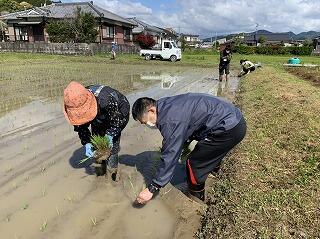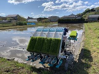 4月13日(月)は、晴天で風の強い中、田植えを行いました。