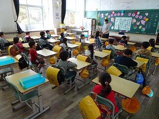 10時30分には下校の時間となり、高学年の子どもたちが迎えに来て、1年生の手を取り、一緒に帰宅しました。