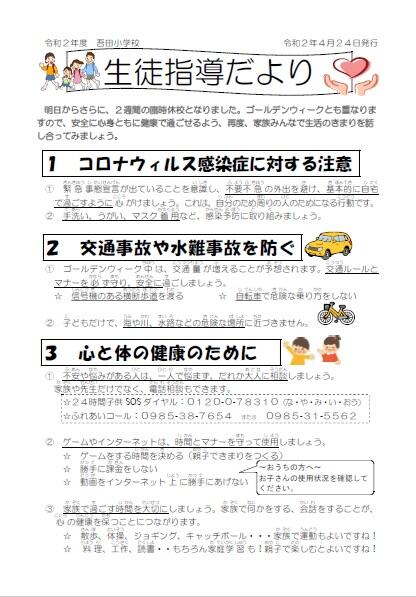18日からのことについて、日南市教育委員会と学校からのお知らせを掲載しますので、ご覧ください。