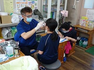 密にならないように間隔を取って並び、二人の先生には丁寧に診察いただき、午前中には全校児童の診察が終えました。
